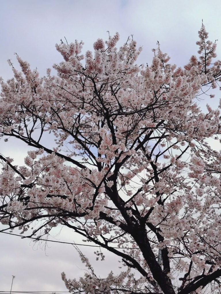 【お米・つや姫】近くで咲く桜が、今年も見事に満開となりました。